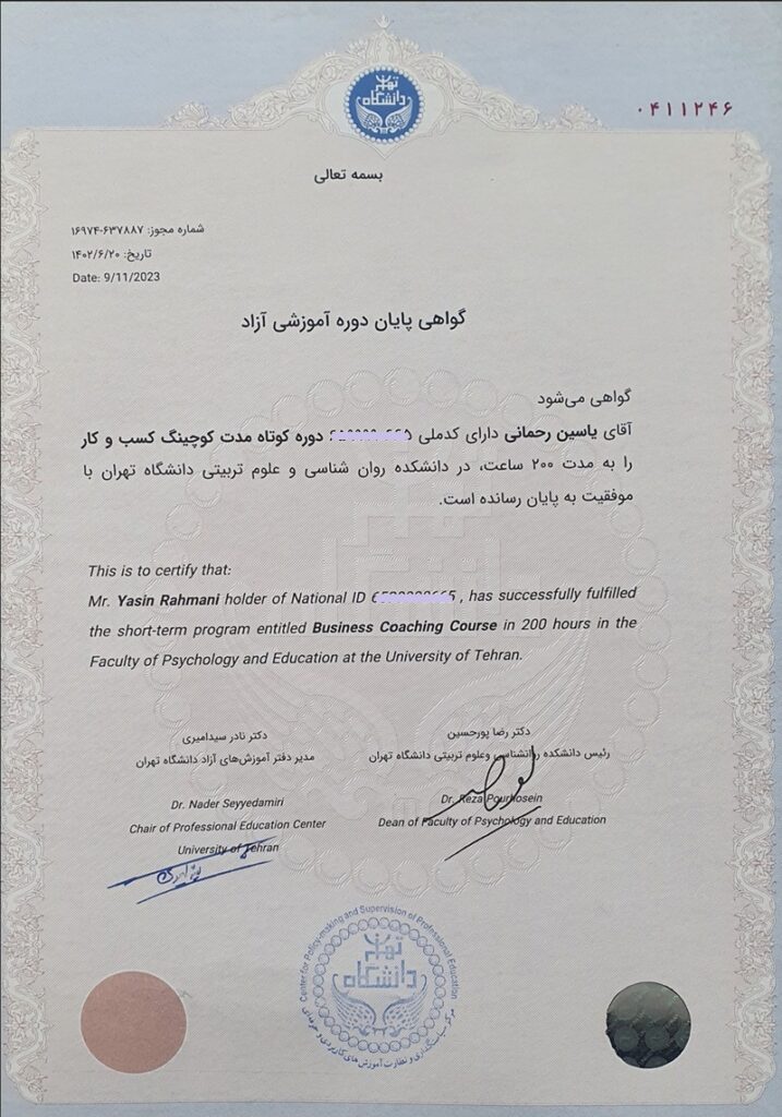 در کنار این مربیگری مهارتهای زندگی (لایف کوچینگ)، آموزش دیده مربیگری کسب و کار (بیزینس کوچینگ) از دانشگاه تهران هم هستم.